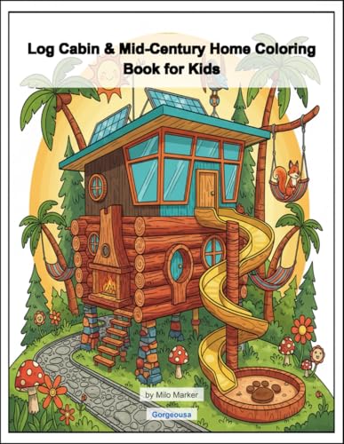 Log Cabin & Mid-Century Home Coloring Book for Kids