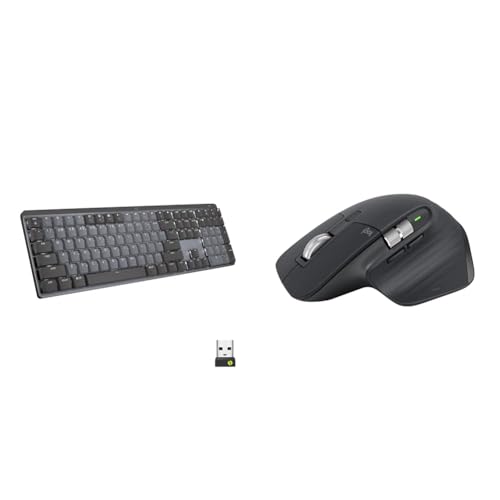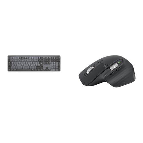 Logitech MX Mechanical trådlöst bakgrundsbelyst tangentbord, linjära brytare, Layout tysk - Grå & Logitech MX Master 3S - Trådlös mus för topprestanda med ultrasnabb scrollning, Ergo, 8K DPI, Mörkgrå