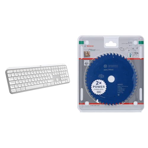 Logitech MX Keys 920-010479 Tangentbord, Grå (Tyskland) & Logitech Lift Vertikal ergonomisk mus, trådlös, Bluetooth eller Logi Bolt USB-mottagare, ljudlösa klick, 4 knappar - Grå