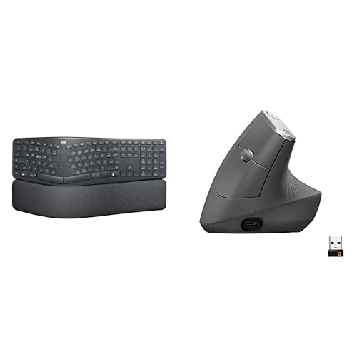 Logitech ERGO K860 Trådlöst ergonomiskt tangentbord med delad tangentbordslayout, smutsresistent material, Logitech MX Vertical Ergonomsk Trådlös mus, Bluetooth och 2,4 GHz med USB Unifying Receiver
