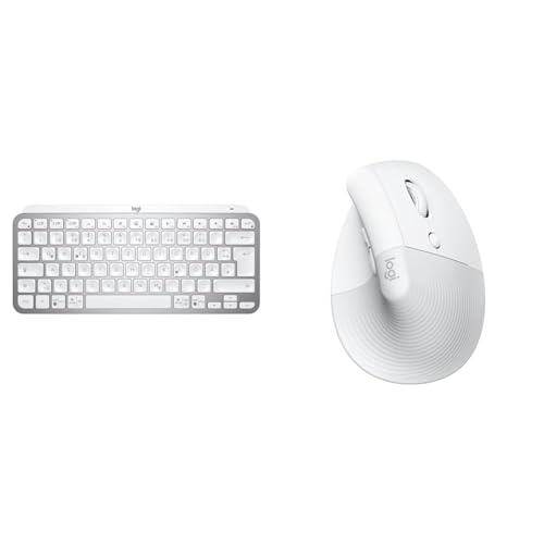 Logitech MX Keys Mini 920-010480 Tangentbord, Grå (tyska tangentbordslayout) & Logitech Lift Vertical ergonomisk mus, trådlös, Bluetooth eller Logi Bolt USB-mottagare, ljudlösa klick, 4 knappar - Vit