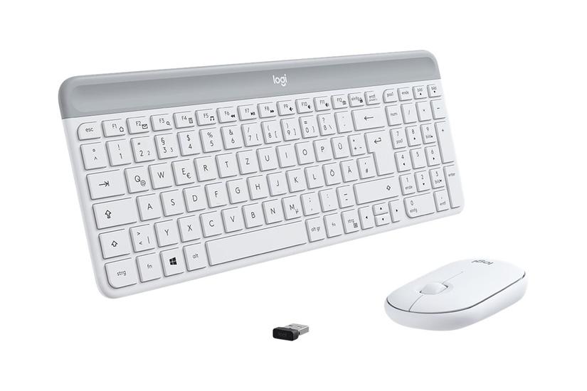 Logitech MK470 Slim Combo Set med trådlöst tangentbord och mus med 2,4 GHz anslutning via nano USB-mottagare, 10 m räckvidd, 18 månaders batteritid, PC/bärbar dator, tysk QWERTZ-layout, vit