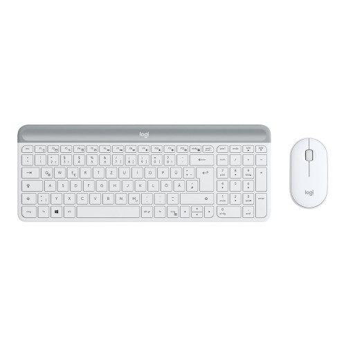 Logitech MK470 Slim Combo Set med trådlöst tangentbord och mus med 2,4 GHz anslutning via nano USB-mottagare, 10 m räckvidd, 18 månaders batteritid, PC/bärbar dator, tysk QWERTZ-layout, vit