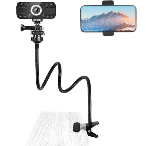 SUNNINGUP Webbkamerastativ, telefonhållare, uppgraderat flexibelt svanhalsstativ för Logitech Webcam C920s, C930e, C930, C920, C922x, C922, Brio 4K, C925e, C615