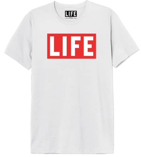 Life Magazine "Life Logo" MELIFEMTS002 T-shirt för herr, vit, storlek L, Vitt och blått, L