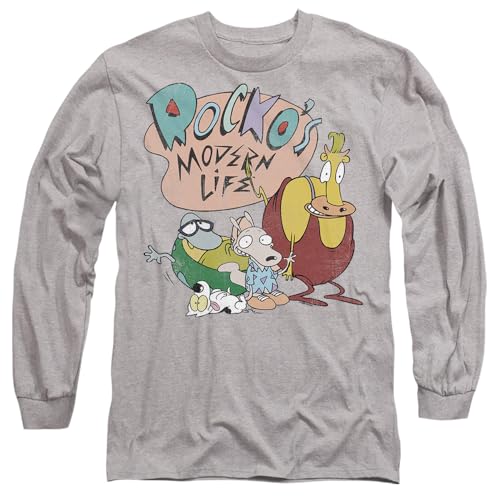 Rockos Modern Life Logo Group Långärmad T-shirt för män, atletisk ljung, XX-Large, Atletisk Heather, XXL
