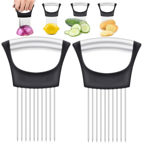 2 st lökskärare, lökhållare rostfritt stål, grönsaksskivare tomatskivare potatisskärare skivor, lökhållare effektivt skärverktyg, lökhackare manuell svart