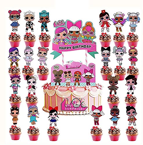 Jieddey LOL tårtdekorationer, 24 st LOL-tema födelsedagstårta toppers lol cupcake toppers födelsedagsdekorationer för barn flickor födelsedagsfest