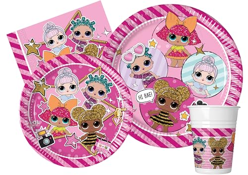 Party Tableware Set L.O.L. Surprise! Glam for 24 people (112 pcs: 24 paper plates Ø23cm, 24 paper plates Ø20cm, 24 cups 200ml, 40 paper napkins 33x33cm)