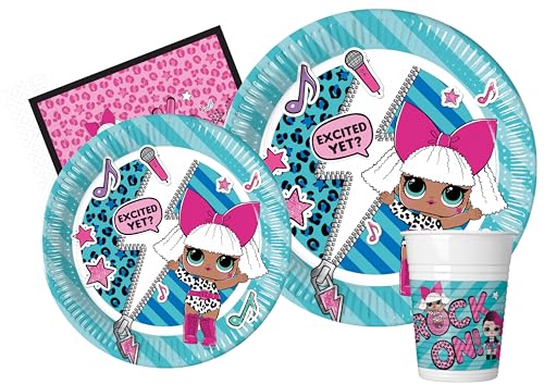 Party Tableware Set L.O.L. Surprise! Rock On! for 24 people (112 pcs: 24 paper plates Ø23cm, 24 paper plates Ø20cm, 24 cups 200ml, 40 paper napkins 33x33cm)