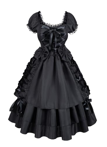 CAMDOM Viktorianska klänningar för kvinnor vintage domstol maskerad klänning medeltida gotisk Lolita-fest svingande aftonklänning, Svart, XXL stor