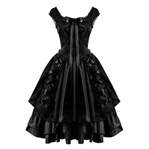 Generisk kvinnor vintage smal gotisk klassisk svart lager spets upp goth lolita klänning medeltida tunika pojkar, svart, L