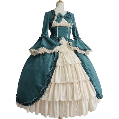 Rokoko-balklänning för dam, gotisk/viktoriansk klänning, medeltida kostym, lång klänning med flera lager och spets, vintage-cosplay klänning, golvlång prinsessklänning, lolita-festklänning, Grön2, S