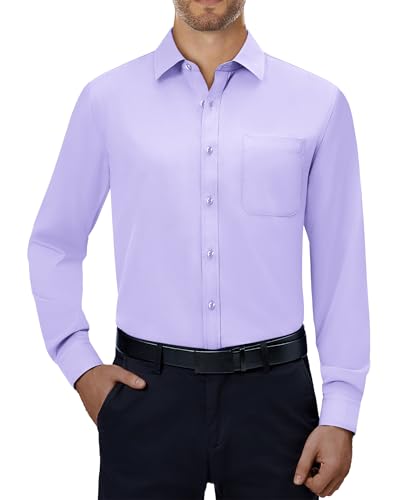 Alimens & Gentle Mens Dress Shirts 4-Way Stretch Long Sleeve Collared Casual Solid Wedding Dating Button Down Shirt Lavender