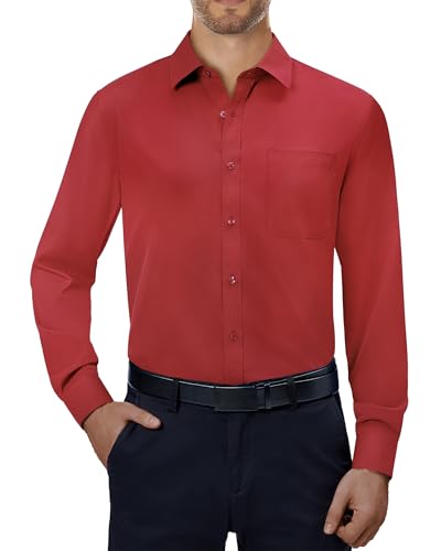 Alimens & Gentle Mens Dress Shirts 4-Way Stretch Long Sleeve Collared Casual Solid Wedding Dating Button Down Shirt