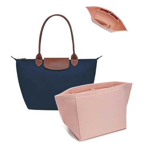 lumanothy Väska Organizer Shoppare, handväskor arrangör med flera fickor, filt longchamp arrangör för longchamp, polen, mammaväska, shoppingväska, rosa, M