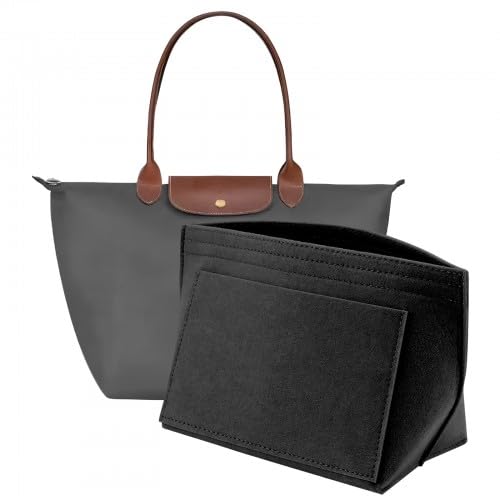 lumanothy Väska Organizer Shoppare, handväskearrangör med flera fickor, filt longchamp arrangör för longchamp, polen, mammaväska, shoppingväska, svart, M