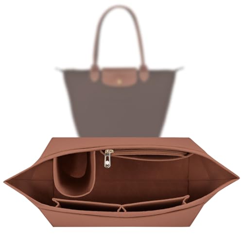 ZOLGINAH Fickor, organisatör för Longchamp Le Pliage, handväskearrangör av filt, med multifunktionella fickor, stor kapacitet, beige, M