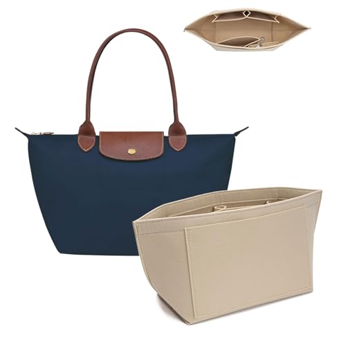 lumanothy Väskor arrangör shopping, handväskearrangör med flera fickor, filt longchamp arrangör för longchamp, polen, mammaväska, shoppingväska (beige, M)