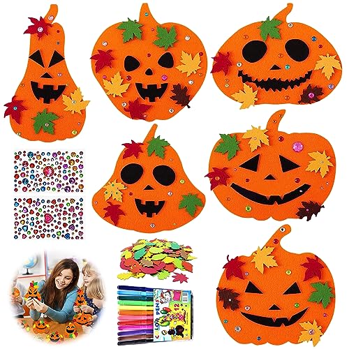 Benjia Höst pysselset för barn, 4 stycken höstkrans, pysselset innehåller pumpor, grankottar, lönnblad, gör-det-själv filt, höst, pyssel, höstkrans, ornament för halloween, jul