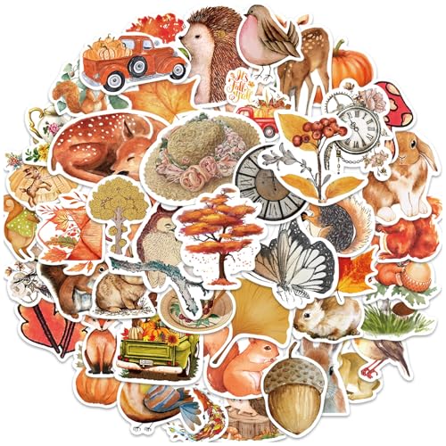 FloralGrace 50 stycken höstklistermärken fönsterklistermärken dekoration skog växt klistermärken klippbok klistermärken lönnblad pumpa svamp bär växt ekorre