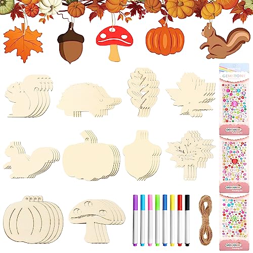 TOPJOWGA Trädekoration Hängande Höst - 91 Stycken Pyssel för Barn, Kreativa Set Med Trähänge för Målning, Pumpa Lönnblad och Dekoration