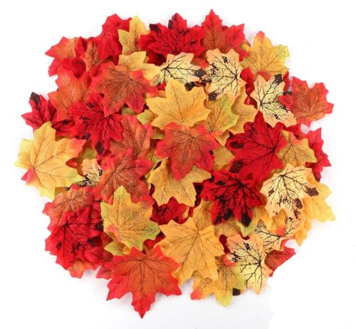 Mocraft 500 stycken lönnblad, dekoration höstblad konstgjorda lönnlöv girlang 5 färger/2 storlekar, höstlöv höstblad dekoration för fest, bröllop, halloween, juldekoration, fest, jul