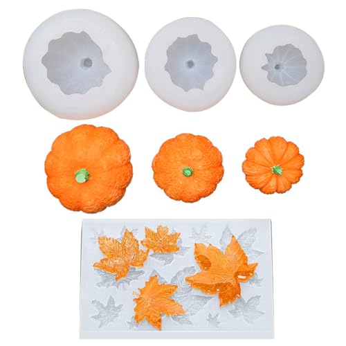 Goldyida 4 stycken 3D pumpa lönnlövsform pumpa hartsformar set 3D halloween pumpaform tacksägelse lönnblad silikonform för gör-det-själv sötsaker höstskörd halloween silikonform ljusform