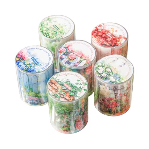 Inscrip Washitejp, 6 rullar blommor lönnblad rosor hortensior PET washitejp, retro växter washitejp, blommigt blad washi tejp klistermärken för gör-det-själv-hantverk, scrapbook, presentförpackning (6