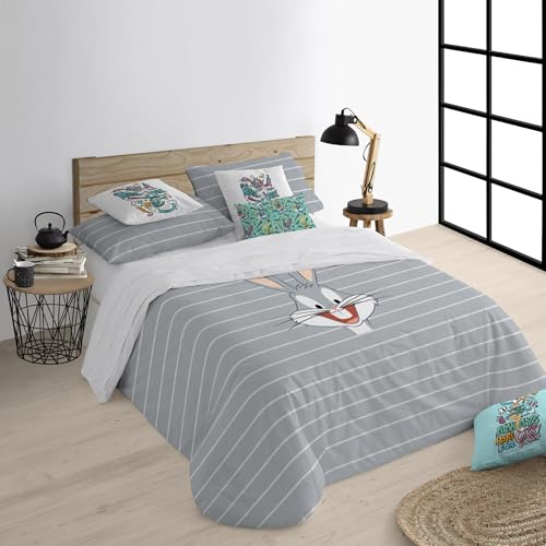 BELUM | Looney Tunes Quilt Bouti Bugs Bunny, Överkast Ekologisk bomullstyg och frisyr för 135 säng, Mjukt överkast, överkast för alla årstider