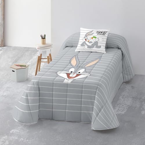 BELUM | Looney Tunes Quilt Bouti Bugs Bunny, Överkast Ekologisk bomullstyg och frisyr för 150 säng, Mjukt överkast, överkast för alla årstider