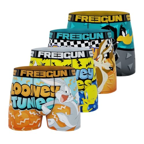 FREEGUN Looney Tunes-boxershorts för män, Bugs Bunny, Daffy Anka och Coyote (set om 4), Orange/svart/gul/vit, XL