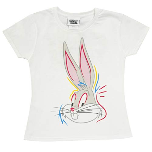Looney Tunes Bugs Bunny Neon Girls T-Shirt | Officiella varor | Klassisk tecknad barnidé för flickor, Vitt, 9-11 År