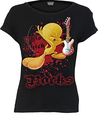 Looney Tunes – Tweety – This Chick Rocks – båthals keps ärm topp svart – L, Svart, L