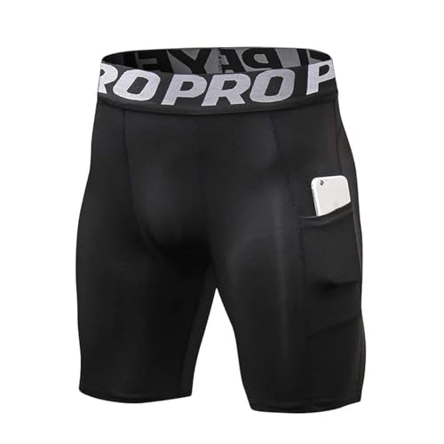 YUSHOW 3-pack kompressionsshorts herr kompressionsbyxor sportbyxor korta snabbtorkande andas sommar korta cykelbyxor svarta herr löparbyxor joggingbyxor med fickor, Svart (1-pack), XL
