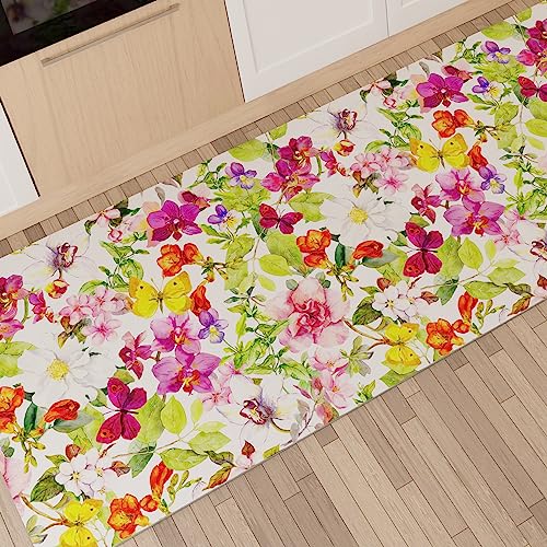 PETTI Artigiani Italiani - Köksmatta löpare kök halkfri och tvättbar 52 x 140 cm blomdesign 01 100% tillverkad i Italien