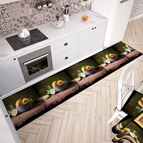 PETTI Artigiani Italiani - Köksmatta löpare kök halkfri och tvättbar 52 x 140 cm citrondesign 100% tillverkad i Italien