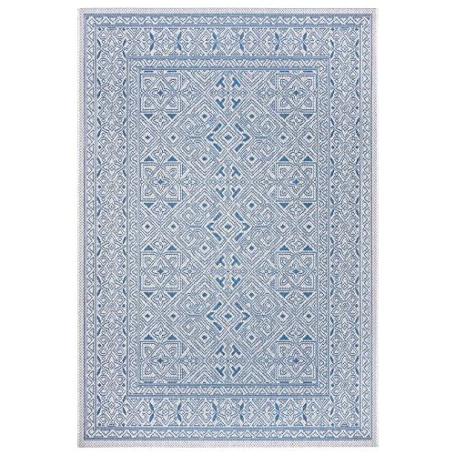 NORTHRUGS inomhus- och utomhusmatta, Cuadrado 70 x 140 cm – platt tyg, väderbeständig, modern, grafisk design, löpare för balkong, terrass, vinterträdgård, kökslöpare, vattentät i petroleumblå,