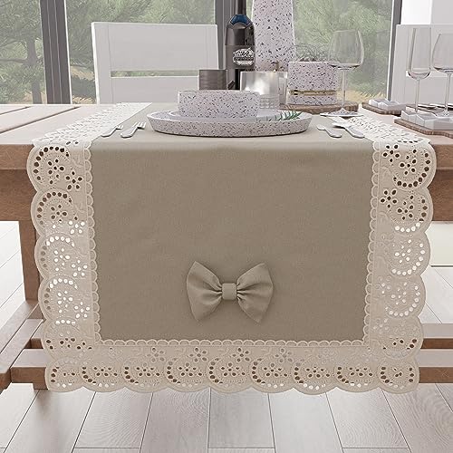 PETTI Artigiani Italiani - Löparbord, Kökslöpare, eleganta enfärgade löpare med volang, snörningstyg och rosetter, löpare i bomull, löpare 40 x 140 cm, 100 % tillverkad i Italien