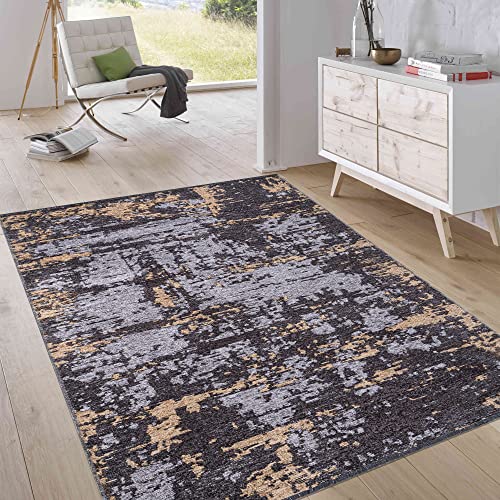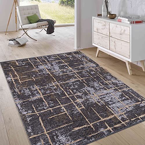 ZDYHMrj Matta, löpare, hall, kök, grå, svart, guld, halkfri, korridor, gångmatta 80 x 300 cm, tvättbar, modern, sovrum, vardagsrum, löpare, matta, bredd 40 cm – 120 cm