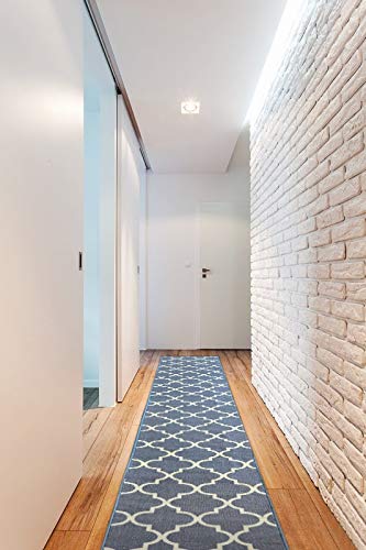 QQrunner Matta löpare hall grå och blå halkfri 80 x 150 cm köksmatta lapptäcke tvättbar metervara sovrum korridor matta lång, justerbar längd 40–120 cm bred