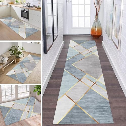 ZDYHMrj Matta löpare hall kök grå blå guld halkfri korridor löpare tvättbar modern sovrum vardagsrum löpare matta bredd 40–120 cm