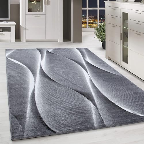 HomebyHome Matta med kort lugg skugga vågor design vardagsrum 11 mm lugghöjd hög färdig mjuk rektangulär löpare grå, storlek: 280 x 370 cm, svart