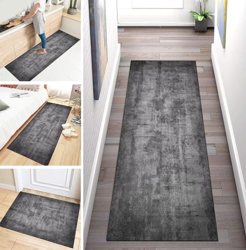 HUGEAR Vintage Löpare Matta Grå Lång Mattor 60x180cm Tvättbar Halkfri Golvmatta Kök Sovrum Matsal Balkong Carpet Rug Mjuk Kort Lugg