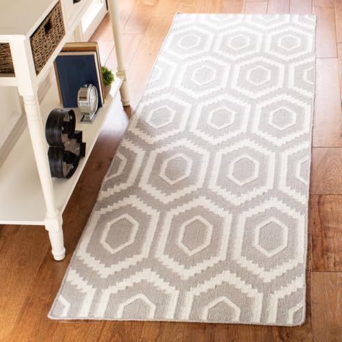 Safavieh Casablanca Dhurrie handvävd matta, platt vävd ull & bomull löpare matta i grå/elfenben, 76 x 243 cm