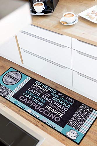 onloom Kökslöpare, kafé, krämvit, löpare, kaffe, färg: grå-turkos, storlek: 50 x 150 cm