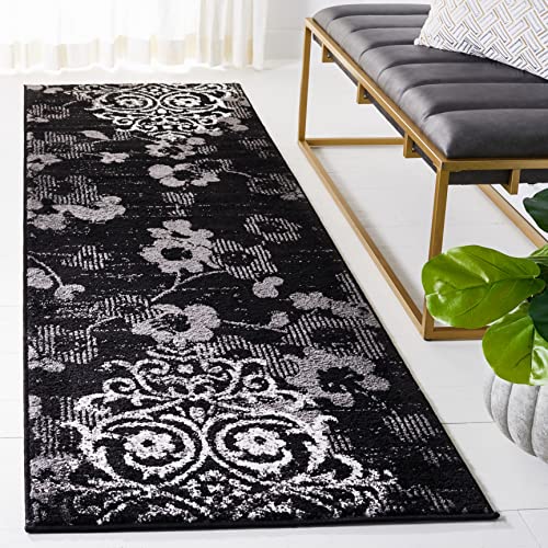 Safavieh Blommig glam damast inomhus vävd löpare matta, Adirondack samling, ADR114, i svart/silver, 76 x 244 cm för vardagsrum, sovrum eller alla inomhusutrymmen