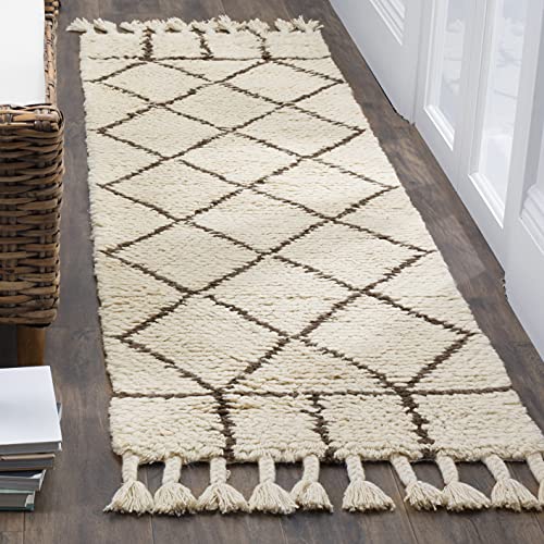 Safavieh Anika tofsade områdesmatta, handtuftad ull och bomull löpare matta i elfenbens/brun, 68 x 243 cm