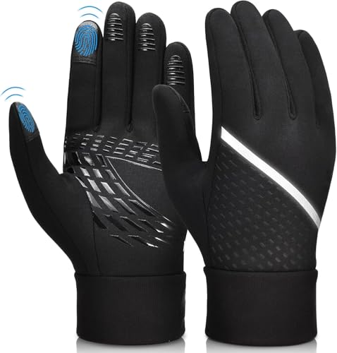 MOKANI Vinter termiska handskar, pekskärm halkfria cykelhandskar vindtäta stänksäkra löparhandskar med varmt fleecefoder för män kvinnor som kör klättring vandring (S/M/L/XL)