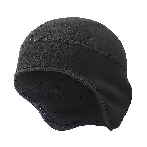 Oscenny cykelmössa, löparmössa, med öronskydd, under hjälm, bra stretch mjuk vindsäker för utomhussport motorcykel, skidåkning, fotboll, löpning skalle keps, män kvinnor höst vinter ., Svart, one size
